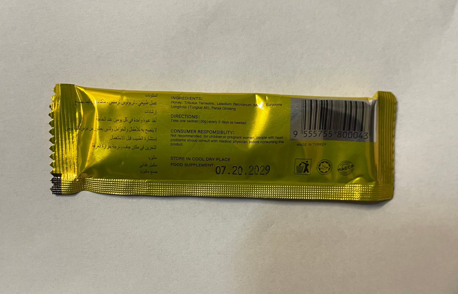 Indulge in the luxurious and natural benefits of 24K Gold Royal Honey, crafted to deliver a premium experience. This 3-pack contains sachets of honey enriched with herbal ingredients, offering potential health and vitality benefits. Perfectly portioned for convenience, each sachet is designed to provide an energy boost, support stamina, and promote overall wellness.