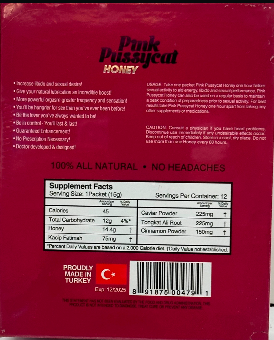 Pink Pussycat Honey contains a gift box including 12 individual honey sachets. Kitty Kat Honey has been scientifically designed for women to increase sexual pleasure and performance. Kitty Kat Honey is formulated to promote vaginal lubrication and enhance longer and more frequent orgasms.